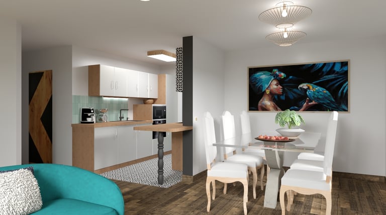 Création insolite d'une pièce de vie de 70m2 dans un appartement