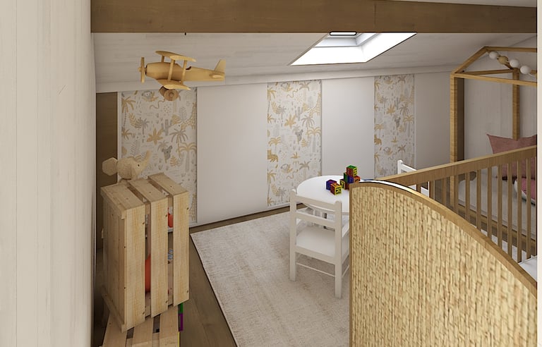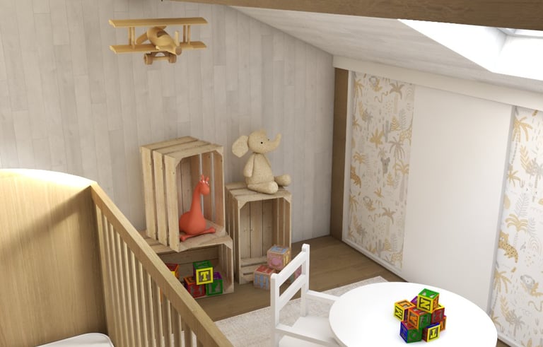 Aménagement de combles, transformé en chambre d'enfant